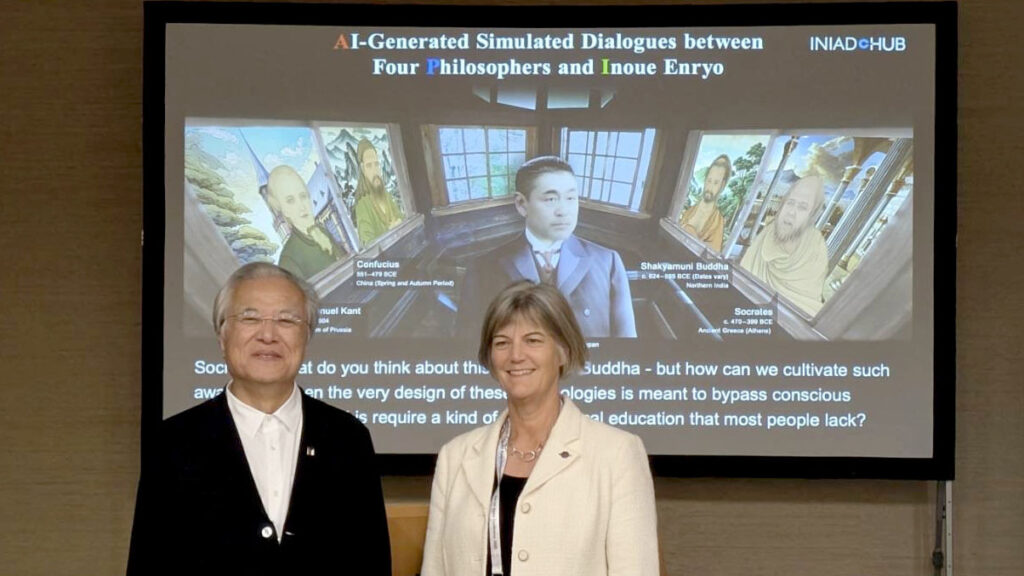 INIAD cHUB(情報連携学 学術実業連携機構)機構長の坂村健の研究室が開発した、AIによる「井上円了・四聖討論」が「第一回京都会議」で披露され、世界各国の識者から高い評価を受けました。