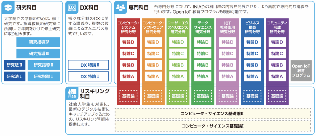 そこで、社会人が最新のデジタル技術を学び直すための、コンピュータサイエンスの基礎科目と、各研究分野の基礎科目を新設します。